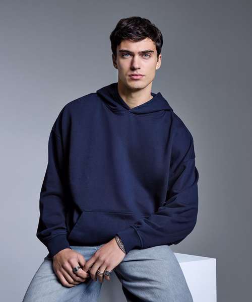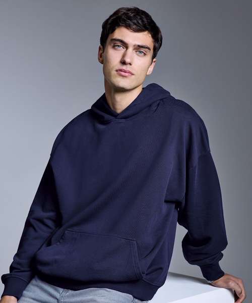The Anthem heavy bass hoodie is the ultimate oversized blank with a heavyweight build and premium finish. Made from certified organic and recycled fabrics, it delivers a soft hand feel with a brushed inner fleece for lasting comfort. The oversized, boxy fit and self-fabric hood give it a contemporary silhouette, while ribbed cuffs, hem and twin-needle stitching add durability. Designed without drawcords for a clean look, it’s finished with a kangaroo pocket and locker patch, plus a size label only, for easy rebranding.