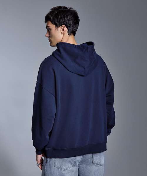 Oversized, boxy fit. Certified organic. Certified recycled. Soft hand feel. Oversized, self-fabric hood. Brushed inner fleece. No drawcords. Twin-needle stitching details. Ribbed cuffs and hem. Locker patch. Kangaroo pocket. Size label only.