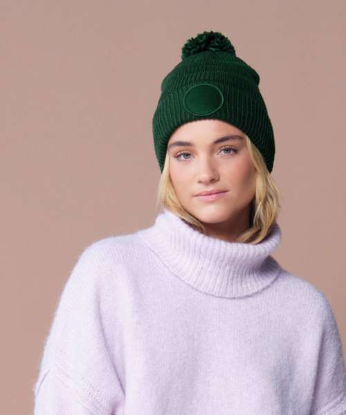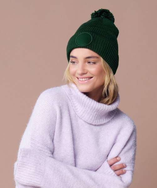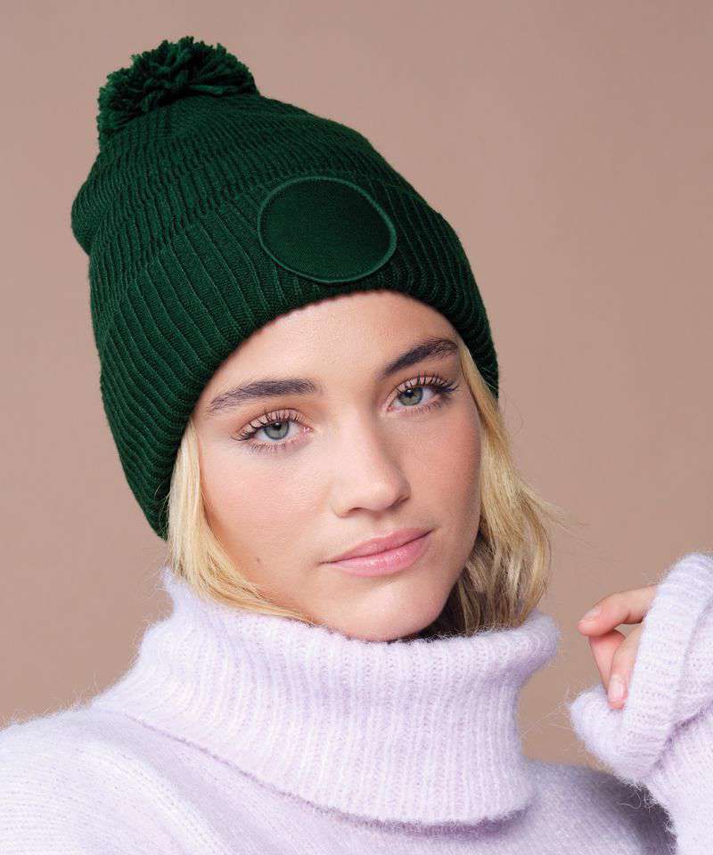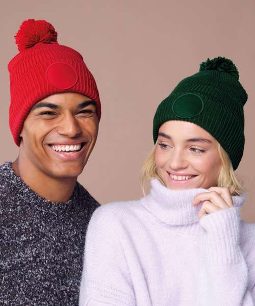 Contains 100% certified recycled polyester. Basket weave knit. Double-layer knit. Self-coloured pom pom. Microfleece lining for comfort and warmth. Cuffed design for optimal decoration. TearAway label for easy rebranding.