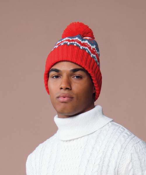 Full fleece recycled polyester lining. Timeless Fair Isle pattern. Classic styling. Self-coloured pom pom. Cuffed design for optimal decoration. TearAway label for easy rebranding.