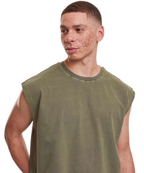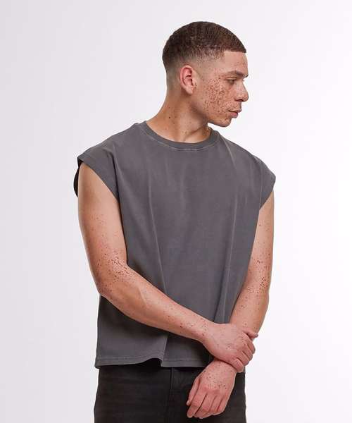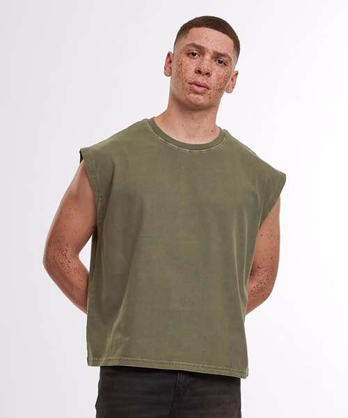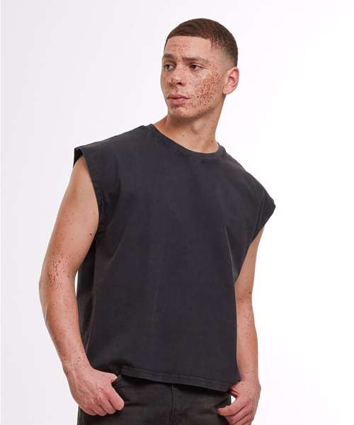 The Vintage cropped heavy sleeveless tee offers a modern, cropped fit and a loose oversized silhouette. Its vintage wash provides a unique, casual style and is the perfect choice for hot summer days.