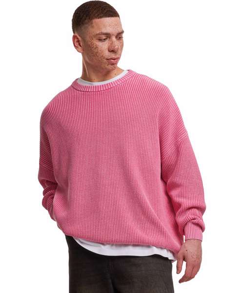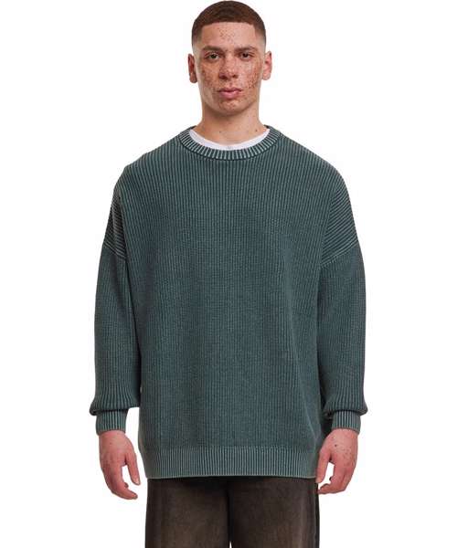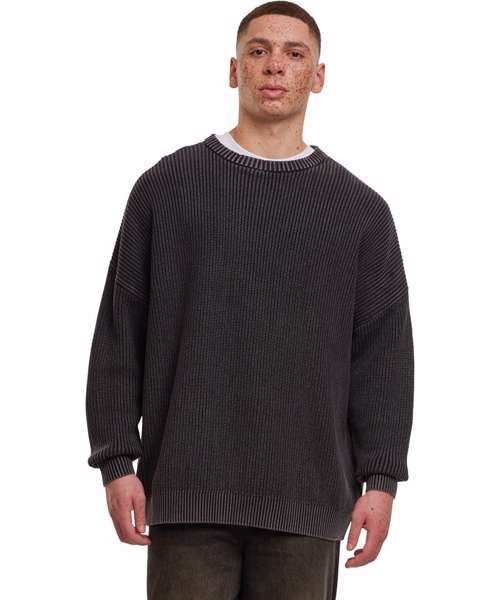 The Acid washed knitted oversized sweater features a chunky knit structure in a modern oversized fit, its distinctive acid wash giving it a unique, used look. This knitted sweater is the ideal choice for trendy, individual style on cooler days.