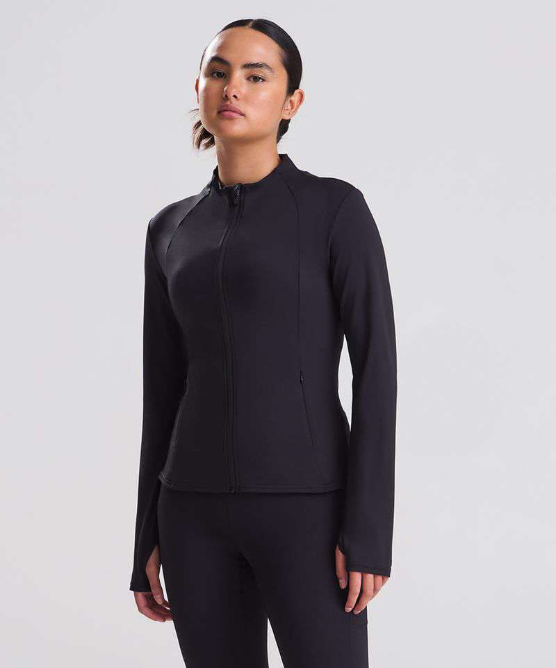 Built to move, the Women’s recycled tech-zip jacket features a slim fit with four-way stretch fabric for unrestricted motion. Wicking, quick-dry technology keeps you comfortable, while zipped pockets secure your essentials. Finished with thumbholes at the sleeves and a tear-away label. Made with recycled polyester.