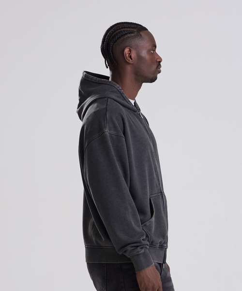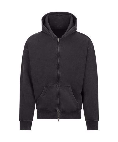 The Vintage washed zoodie combines an oversized fit with a washed finish for a laid-back, street-ready look. Featuring a full-zip, double-layer hood and French terry inner, it’s designed for everyday wear. Ribbed cuffs and hem add structure, while the kangaroo pouch pockets, locker patch and size label only make it perfect for easy rebranding. Made with cotton and recycled polyester.