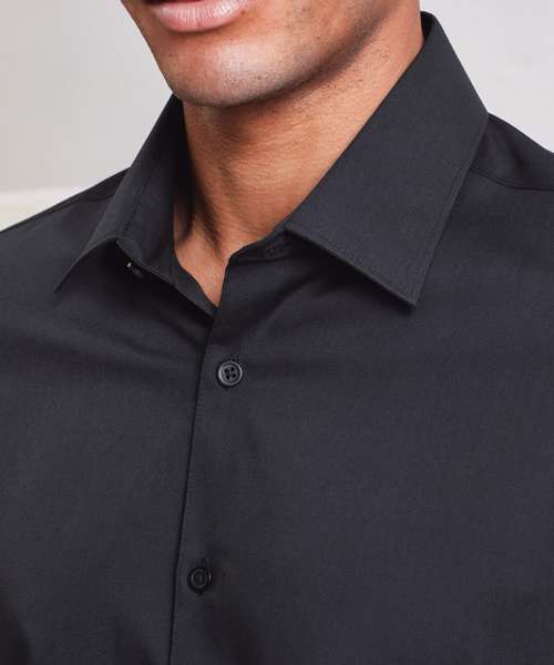 Created using materials with less impact, this best-selling men’s poplin shirt is now available in a certified recycled polyester/cotton blend. It boasts the same great easycare properties as our classic poplin but is constructed in a heavier weight and has a more fitted shape. A stiffened formal collar with top button fastening makes for a smart shirt with the option to wear it open-collared for a more relaxed look. A double-buttoned cuff with cufflink hole and a single-button sleeve guard facilitate a roll-back option. Constructed with back darts to enhance fit and shape. A great, everyday, easycare men’s work shirt.