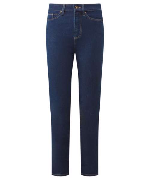 Women’s classic straight-leg jeans with a fade-resistant finish tested to 20 washes. Durable fabric fit for everyday comfort with elastane for stretch. Designed with belt loops, a metal button and a covered zip fly. Functional side-stitched pockets, rivets and stitched coin pocket with reinforced bar tacking. Stitched v-shape yoke and two patch pockets to the back. Classic jean styling with twin-needle stitching and metal hardware. Responsible fabric sourcing. Always Indigo contains certified recycled polyester. Available in regular leg (31"/79cm) and long leg (34"/86cm).