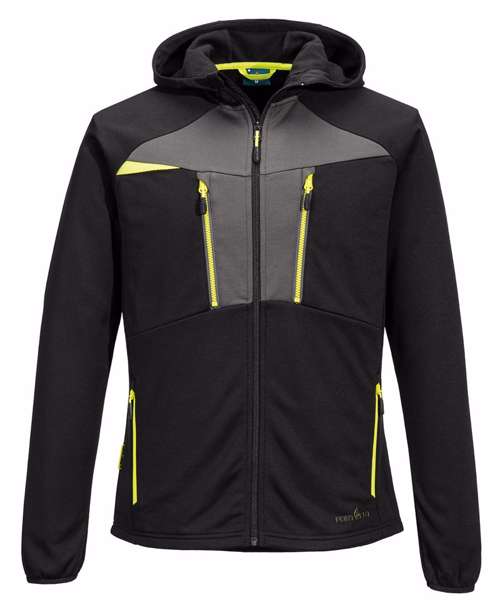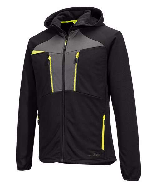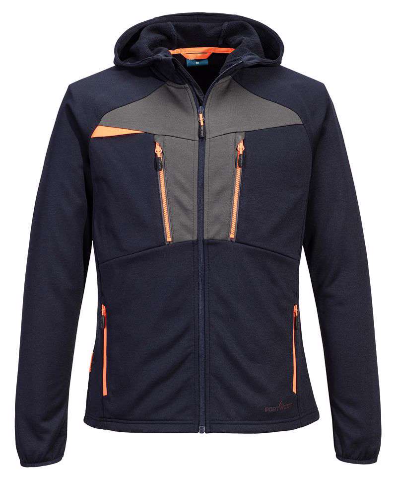 Anti-pill, durable fleece fabric. Four pockets for ample storage. Zipped chest pockets. Ergonomically shaped hood for a perfect fit. Elasticated cuffs for a secure fit. Dropped-back hem for better coverage.