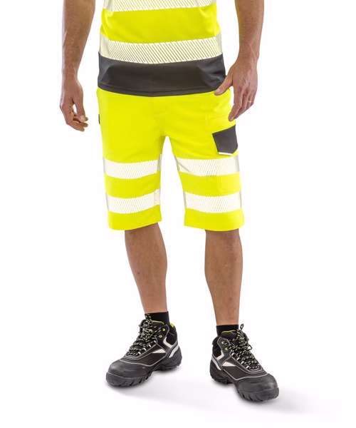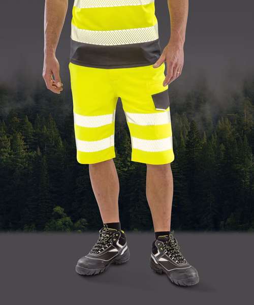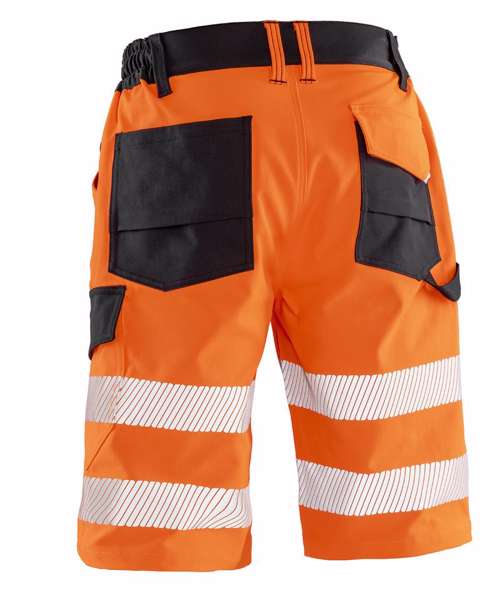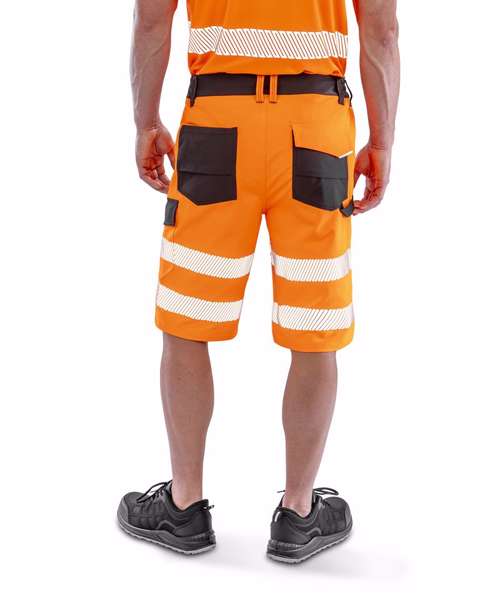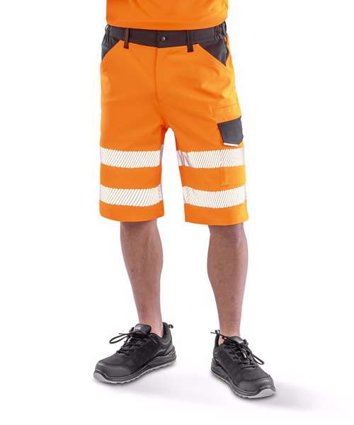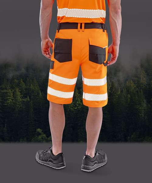 Soft-feel, wrinkle-free stretch fabric – springs back to shape. Elastomultiester fibres’ unique structure provides a more sustainable recycled choice to traditional elastane: moisture-wicking properties and increased resistance to damage lead to longer-lasting garments and help reduce textile waste. Seven pockets, including expandable back pockets. Treble-stitched critical seams. Side elasticated waistband with high back. Printed safety bands. Zip fly with rivet. Hammer loop. Belt loops. Slim fit. Elastane-free. TPU-free. EN ISO 20471:2013+A1:2016 CLASS 1RIS-3279-TOM ISSUE 2:2019 CLASS 1 (orange).