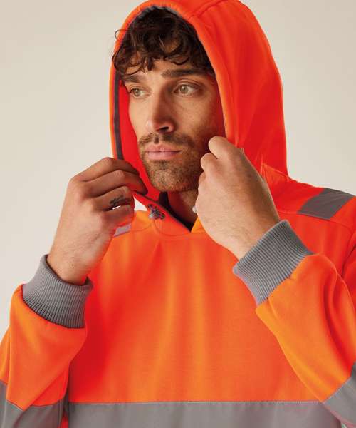 The Hi-vis Pro contract hoodie, from Regatta Professional, is certified for workplace safety and built for all-day comfort. It’s made with brushed fleece and features an adjustable hood, ribbed trims and a front kangaroo pocket to keep you warm and ready on the job.