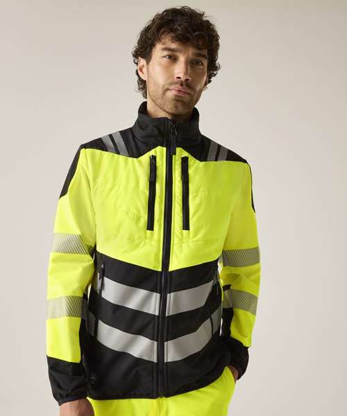 Lightweight four-way stretch fabric with durable water-repellent finish. Mechanical stretch softshell on sleeves and side panels for improved fit and freedom of movement. Warmloft Insulation on chest and back. Certified to EN ISO 20471:2013 A1:2016 Class 2. Orange colourway also certified to RIS-3279-TOM. Heat-applied reflective tape with segmented tape on strategic panels for additional comfort. Two zipped lower pockets and two zipped chest pockets. One internal zipped chest pocket and one lower mesh pocket. Centre front zip with inner chin guard. ID reflection – angled chevrons indicate which way the wearer is facing: towards or away.
