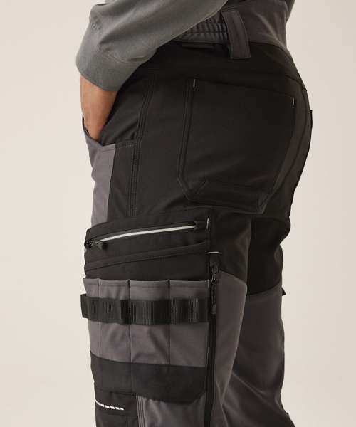 These stretch trousers, from Regatta Professional, are designed for lasting comfort and durability. The robust Cordura® fabric kneepad pockets and reinforced seams are designed to withstand the most demanding work environments, while detachable holsters, complete with generous tool pockets, add a layer of convenience and efficiency to your daily work routine.