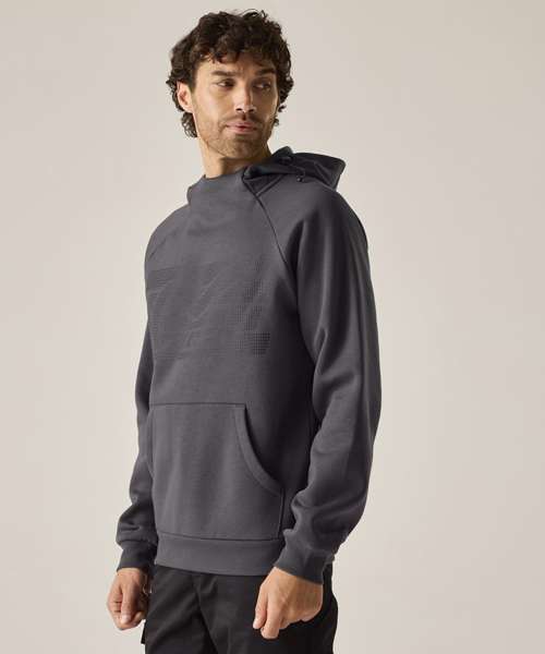 The Pro trade hoodie blends everyday comfort with modern design. Made from a durable, cotton-polyester, brushed back fabric, it features a graphic print, adjustable grown-on hood and kangaroo pocket – ideal for tradespeople who value both practicality and style.