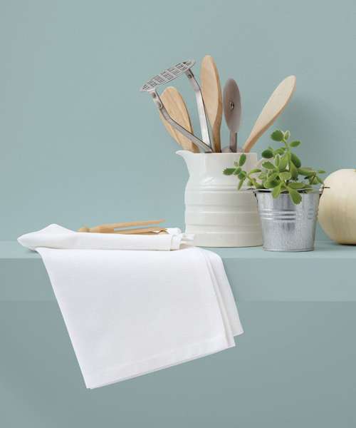 Tea Towel. Herringbone hanging loop in the corner. Hemmed edges. Soft-feel fabric. Packed flat ready for printing. Certified 200gsm organic cotton.