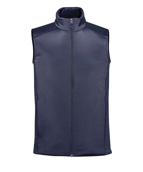 Stormtech Thermal Shell™ insulation. Durable water-repellent finish. High-performance stretch woven outer shell. High-density brushed back knit panels. Zipped on-seam handwarmer pockets. Single-hand hem adjustment. Partially elasticised armhole trim. Contoured seaming. Contains recycled materials.