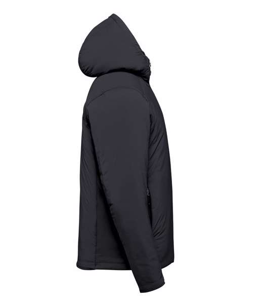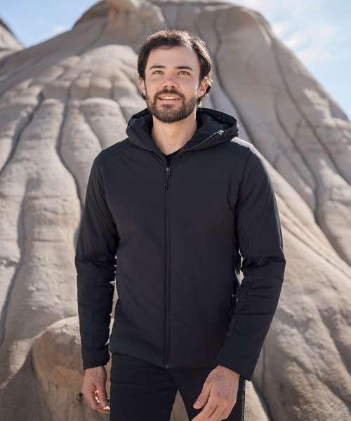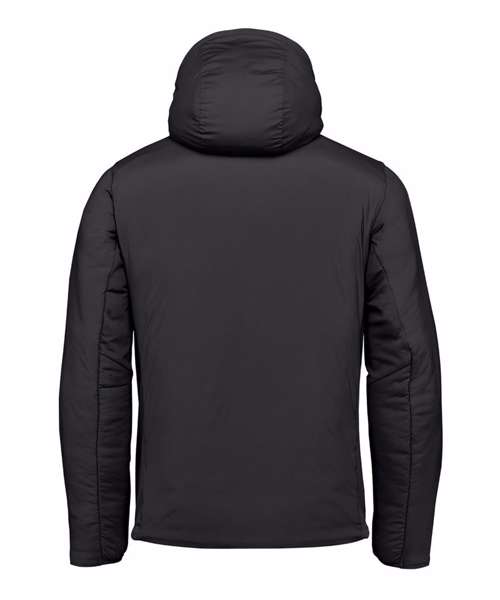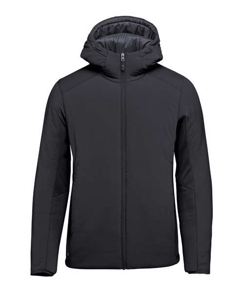 Stormtech Thermal Shell™ insulation. Durable water-repellent finish. High-performance stretch woven outer shell. Full-coverage attached hood with easy-lock adjustment. High-density brushed-back knit panels. Articulated elbows. Underarm gussets. Zipped on-seam handwarmer pockets. Single-hand hem adjustment. Partially elasticised cuffs. Contoured seaming. Contains recycled materials.