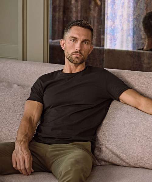 Two-layer collar with elastane. Double pre-shrunk. Double stitched. Long-fibre cotton. Enzyme-washed. Silicone treatment. Full-feeder elastane. Shoulder-to-shoulder taping.