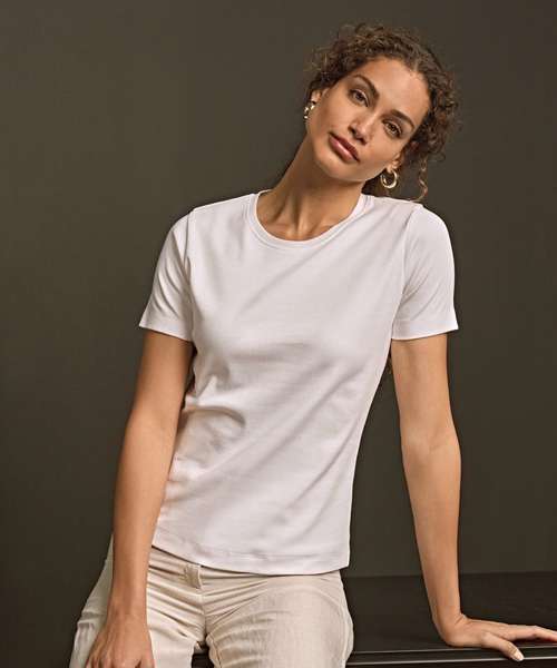 Give your casual looks an elegant spin in the uniquely designed Women’s interlock tee, with a shaped fit, short sleeves and a slim neck rib – perfectly stylish without compromising on comfort. It’s crafted in fine 40 singles yarn, offering a smooth, firm surface.