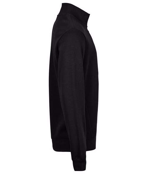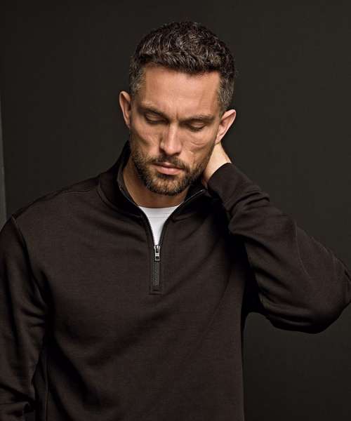 Half-zip. SBS zip. Ribs with elastane. Herringbone neck tape. Double pre-shrunk. Silicone treatment.