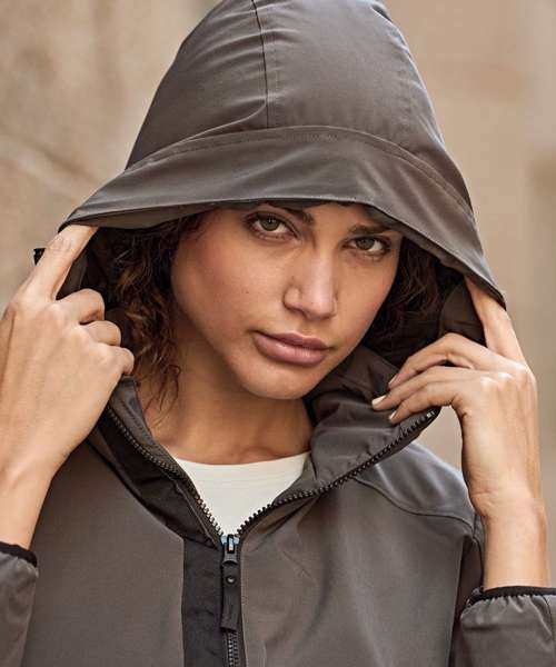 Four-way stretch fabric. Chin protection. Detachable hood with drawstring regulation. Two pockets with double opening. Elastic hem and cuff. Inner pocket with snap button. SBS zips. Prepared for embroidery.
