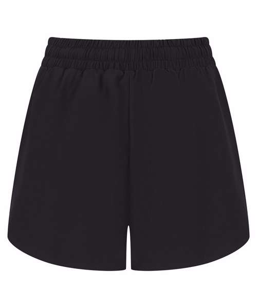Women’s double-layer sports shorts. Four-way stretch fabric. Undershort made from stretch interlock fabric with wicking properties, and with phone pocket on left-hand side (as worn). High side vents for easy movement. Self-fabric elasticated waistband. Internal drawcords.
