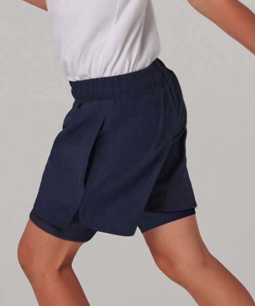 Double-layer sports shorts for kids, made with four-way stretch microfibre fabric.