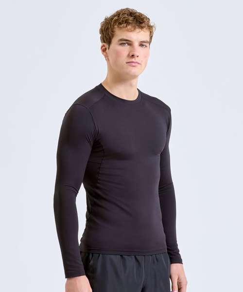 Stretch. Crew neck. Long sleeve. Lightweight. Twin-needle stitching on hem and arms. We recommend using block out vinyl and inks.Product contains no branded neck or waist label. Removable Kimble or looped garment tags. Inner seam label holds important product information on one label with a second label containing brand information which can be cut-away. UPF 40+.
