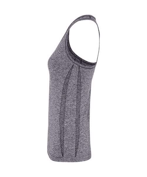 Seamless vest. Contrast detailing. Wicking fabric. Body sculpting design detailing. We recommend using block out vinyl and inks.Product contains no branded neck or waist label. Removable Kimble or looped garment tags. Inner seam label holds important product information on one label with a second label containing brand information which can be cut-away.