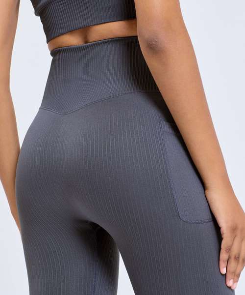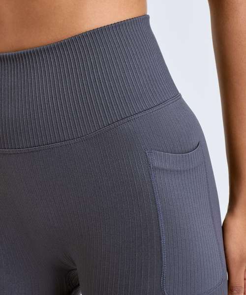 Seamless. High waistband. Ribbed cuffs. Stretchy. Ribbed detailing. Pockets to each upper thigh. We recommend using block out vinyl and inks.Product contains no branded neck or waist label. Removable Kimble or looped garment tags. Inner seam label holds important product information on one label with a second label containing brand information which can be cut-away.