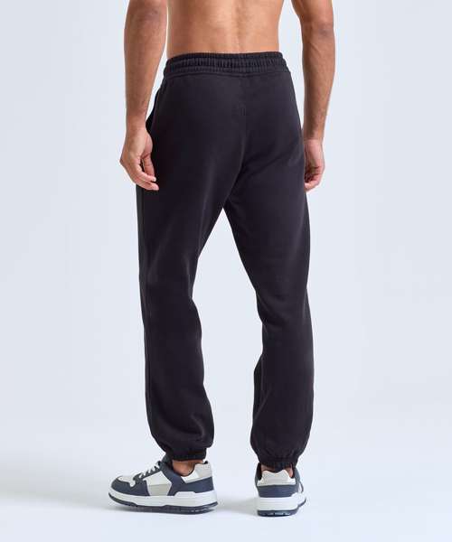 Soft-feel joggers. Unisex style. Relaxed loose fit. Inner brushed fleece. Recycled polyester. Elasticated waistband and cuffs. Buttonhole stitched eyelets. Cords with painted metal ends.