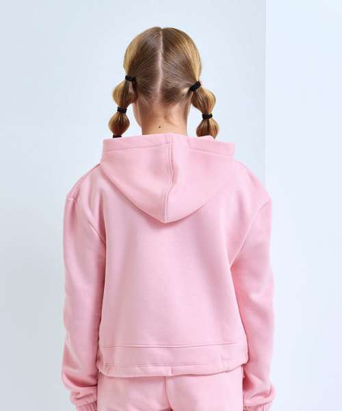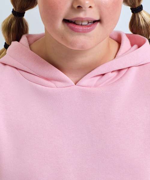 Oversized. Cropped. Relaxed fit. Hoodie. Dropped shoulders. Drawcord fastening at waist. Drawstring tie to waist which is sewn in at the back of the garment. We recommend using block out vinyl and inks.Product contains no branded neck or waist label. Removable Kimble or looped garment tags. Inner seam label holds important product information on one label with a second label containing brand information which can be cut-away. Recycled polyester.