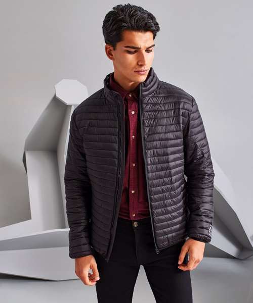 Tonal coil zip on centre front with signature zip puller and internal storm flap and chin guard. Horizontal sandwiched narrow baffles on front and back body. 228gsm lightweight polyester fill. Internal binding on all seams. Internal back neck hanger loop. Concealed zip pockets with teardrop pullers. Stretch binding around cuffs and hem for added protection. Packable bag. Product contains no branded neck label.* Removable Kimble or looped garment tags. Inner seam label holds important product information on one label with a second label containing brand information which can be cut-away.