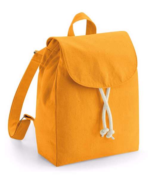Contains 100% certified organic cotton. Premium, heavyweight fabric. Fold-over flap with secure press stud. Rope drawcord closure. Self-fabric adjustable shoulder straps. Grab handle.