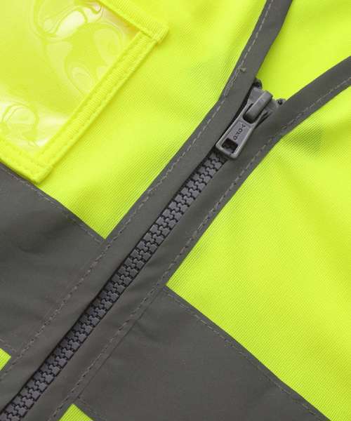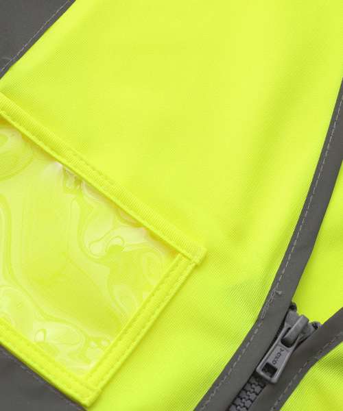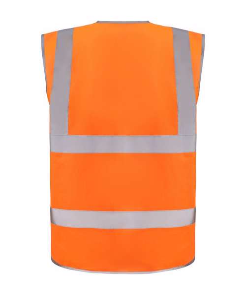 Conforms to EN ISO20471:2013 Class 2. Hi-vis Orange also conforms to RIS-3279-TOM. Proudly made of recycled polyester, with features including reflective borders, zip fastening and an ID pocket, with reinforced stitches around the zip and ID pouch. Full-length matching-colour zip ensures secure fastening. Great size choices. Large decoration area for logos and branding.