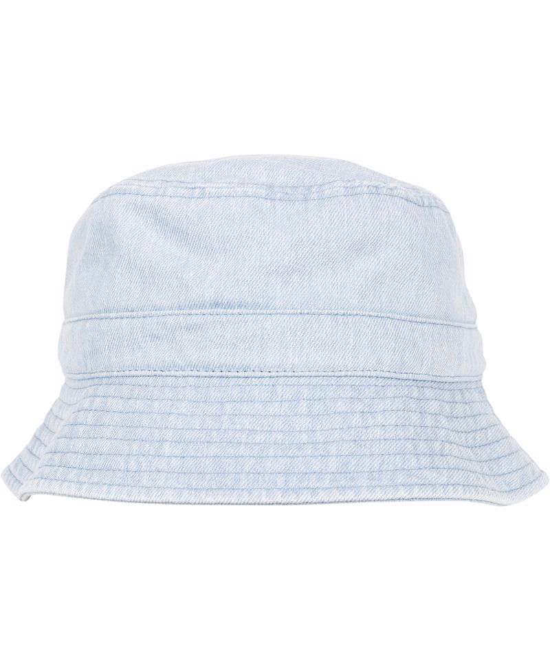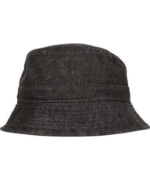 Denim bucket hat. Denim look in washed-out light blue or black grey. Circumferential brim. Decorative stitching. Stability is provided by an extra sewn-in circumferential band.