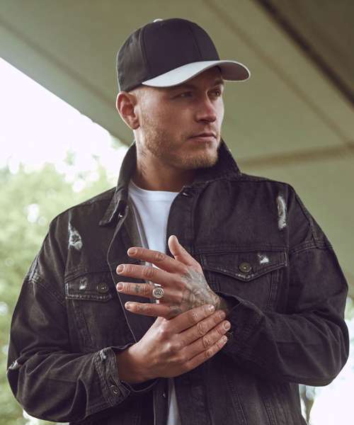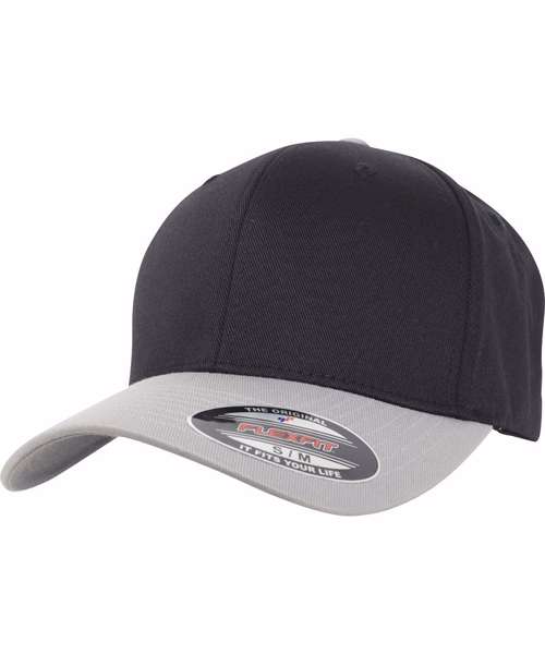 The classic shape of the Flexfit wooly combed 2-tone compliments the matching plastic snap and hard buckram. This cap has premium wool-blend in two colours and a classic silver undervisor.