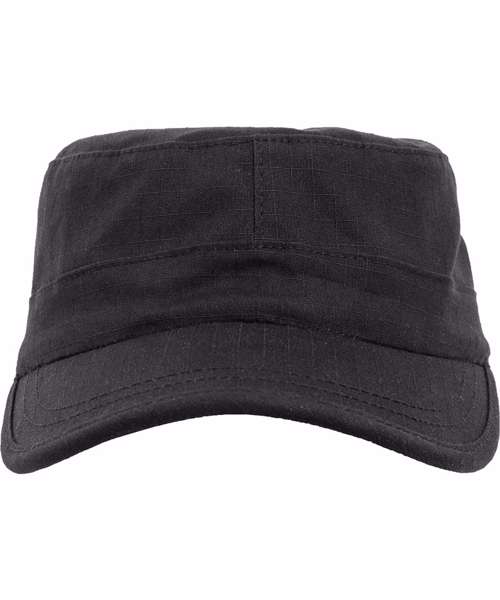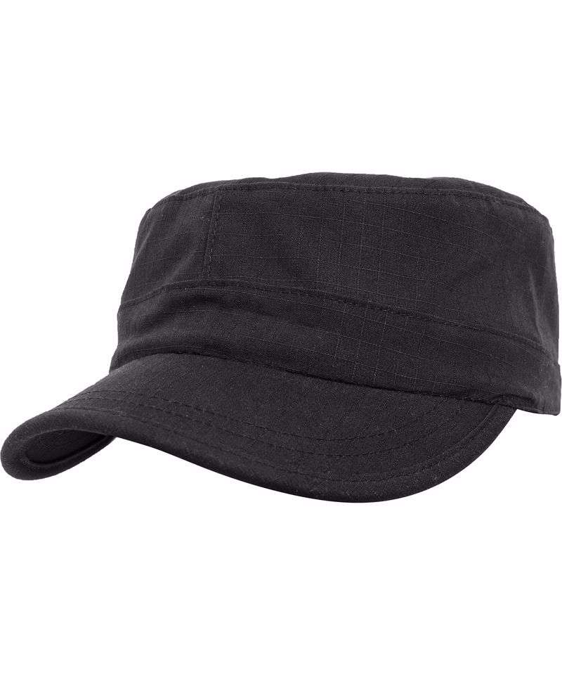 Military style cap. Cutty, curved visor enhanced by subtle decorative stitching. Tear-resistant ripstop. Elastic band for perfect fitting.